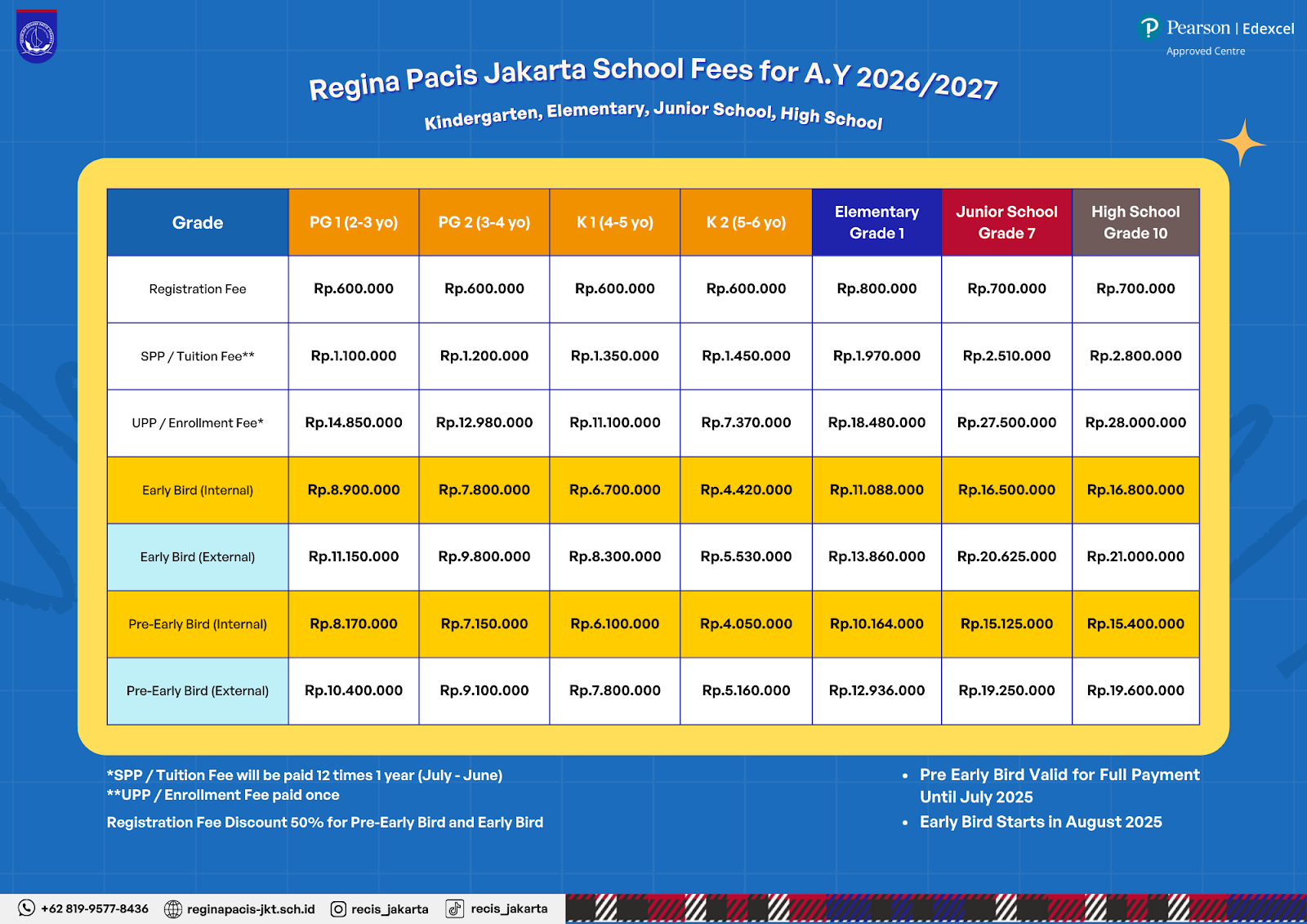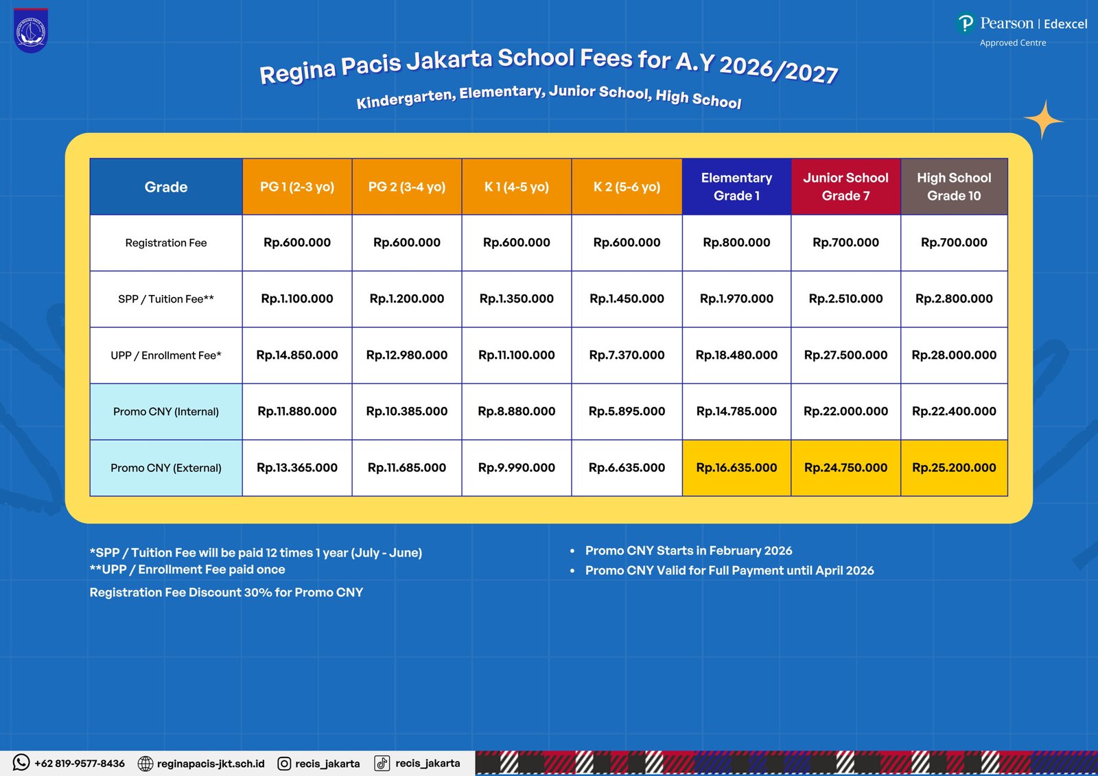 Learn more about our school fees and how Regina Pacis Jakarta is committed to providing quality education worth every investment